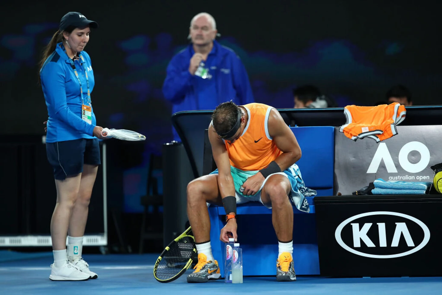 61. Во время каждой смены сторон Надаль определенным образом выставляет свои бутылочки. «Глоток из одной, потом из другой. А потом я ставлю их у ног, одну за другой по диагонали», – объяснял он в автобиографии.