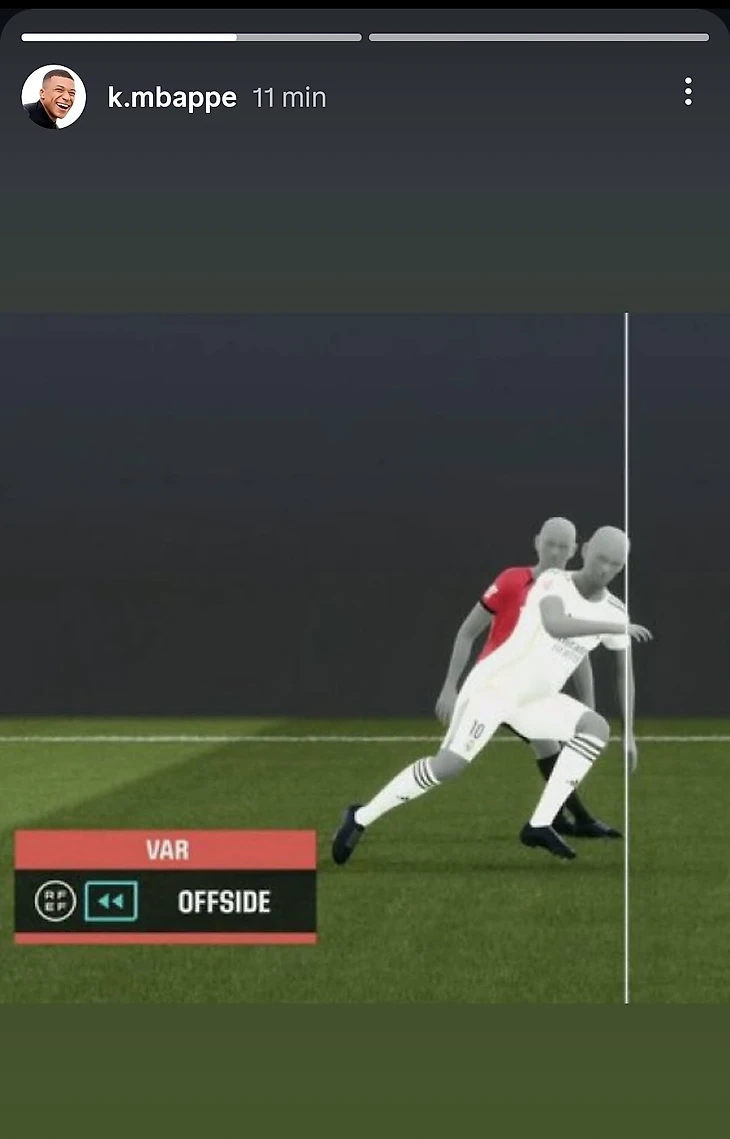 А после игры с «Мальоркой» Мбаппе даже опубликовал загадочный скриншот с трансляции: возможно, намекает, что офсайд ну совсем минимальный.