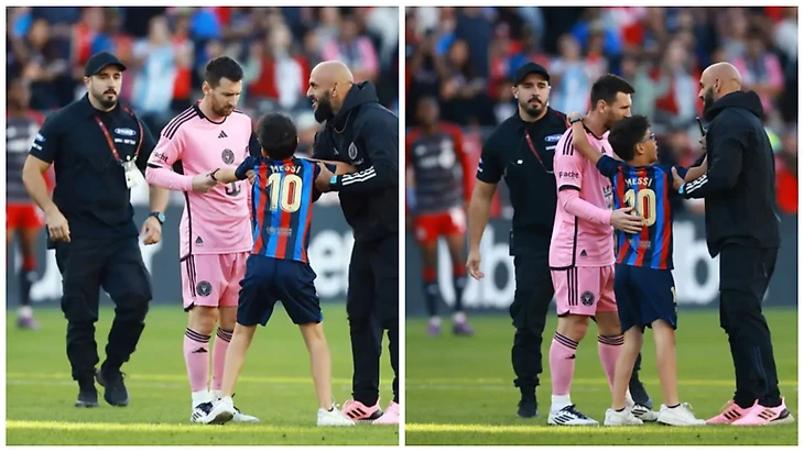 Юный фанат «Барселоны» выбежал на поле во время матча «Интер Майами» и «Торонто». Он очень хотел встретиться с Лионелем Месси. Охранник аргентинца Яссин тут же приостановил его – но Лео попросил телохранителя пропустить гостя.