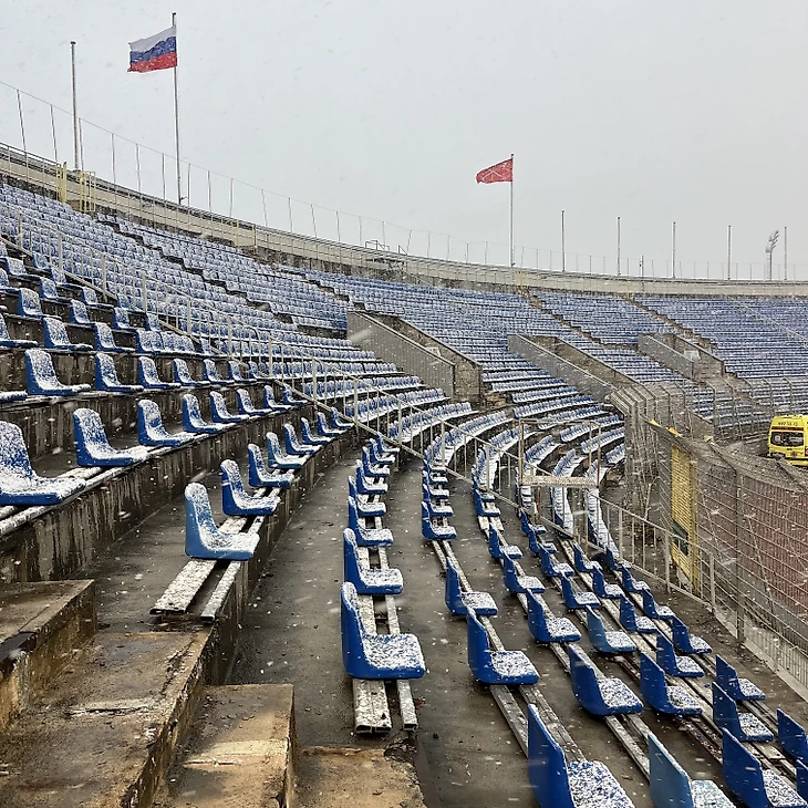 Захожу в чашу. Первое, что вижу – прореженные трибуны. На центральной (секторы с восьмого по десятый) снята большая часть кресел – осталось только каждое третье. Вероятно, в целях безопасности: чем меньше людей, тем ниже нагрузка на сооружение.