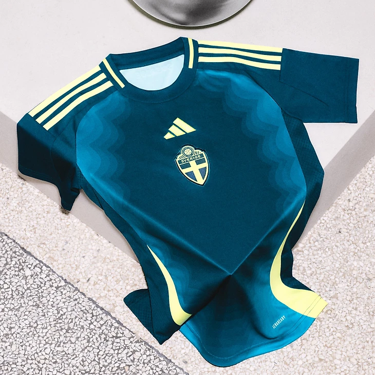 Шведки сыграют в форме, выполненной в бирюзово-голубой цветовой гамме со светло-желтыми акцентами и абстрактным дизайном, вдохновленной шведскими художницами, такими как Хильма аф Клинт:
