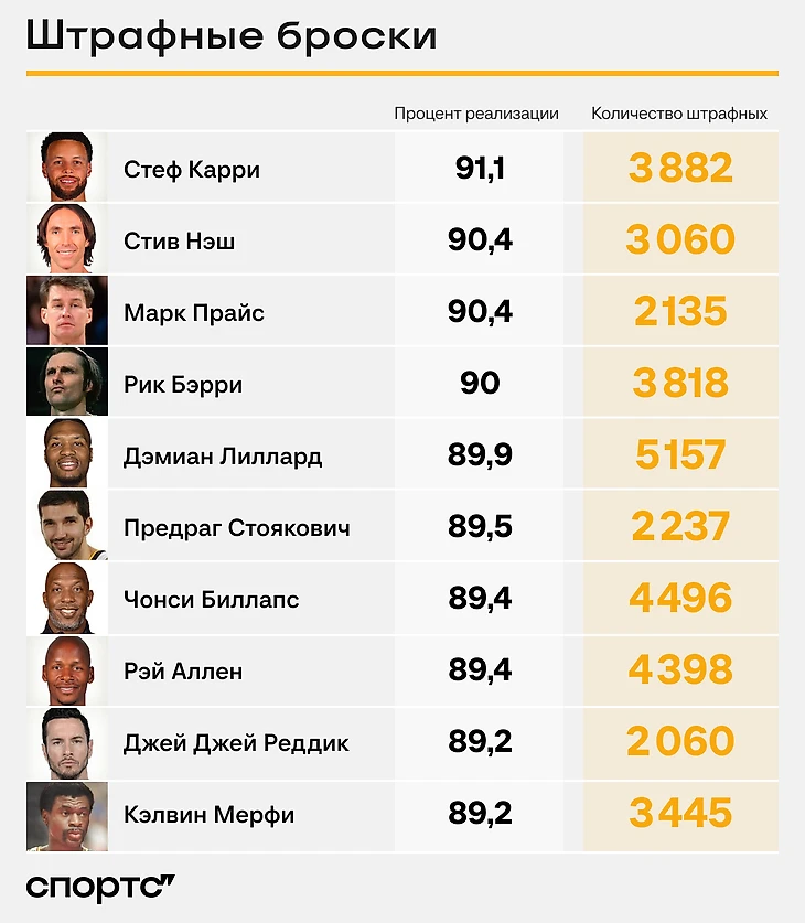 Даже сейчас, спустя 10 лет, Нэш остается в топ-10 самых исправных «штрафников», там мало что меняется. Он бы и в нынешней лиге был самым точным исполнителем штрафных, если бы не старания игрока, который принципиально изменил отношение спортивной аудитории к броску. Как выясняется, не только трехочковому.