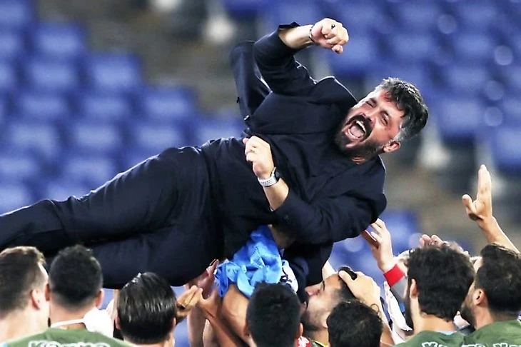 Рино опять начал с 4-3-3, встряхнул раздевалку. Потом – ковид. А после паузы – Кубок Италии. Победа пришла почти ниоткуда. В финале – обыгран «Ювентус» с трезубцем Криштиану – Дуглас Коста – Дибала. «Наполи» Гаттузо победил, полностью отказавшись от мяча. Команда выстроилась настолько низко, насколько это возможно. Отбились. Выиграли.
