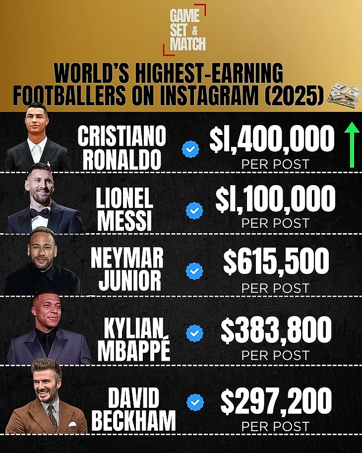 Давайте посмотрим, кто из звезд футбола бьет рекорды в социальных сетях и больше всех берет за пост в 2025 году.