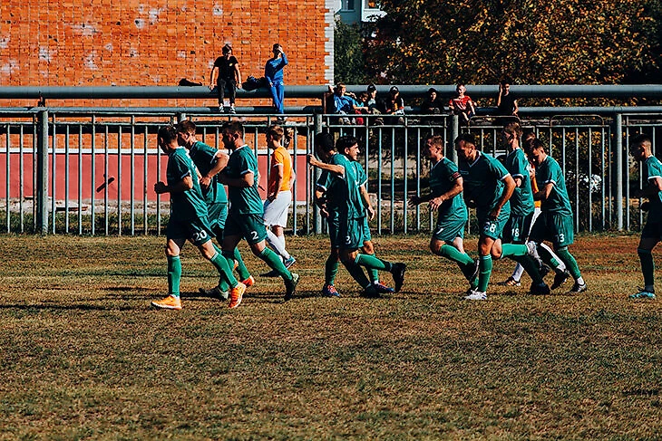 Перед стартом лиги мы провели буквально одну тренировку, а еще попросили начать с матчей в гостях, чтобы хоть как-то подготовить поле: там трава не косилась, на трибунах – стекло, банки и куча мусора. Все вместе провели несколько субботников. И игроки, и тренеры, и руководители красили и чинили ворота, купили сетки. Собрали форму из двух разных комплектов (футболки немного отличались). Девушка одного из футболистов сделала несколько проектов герба и флага. И так готовились к первому матчу.