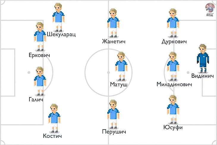 У Югославии 3-3-4 и более плотный центр, за счет которого в первом тайме они и будут оказывать давление на ворота Яшина. Отдельно стоит выделить Шекулараца, который один из немногих менял по ходу игры фланги, заставляя мучаться Нетто, Войнова и Чохели. Нечто аналогичное у нас делал Бубукин.