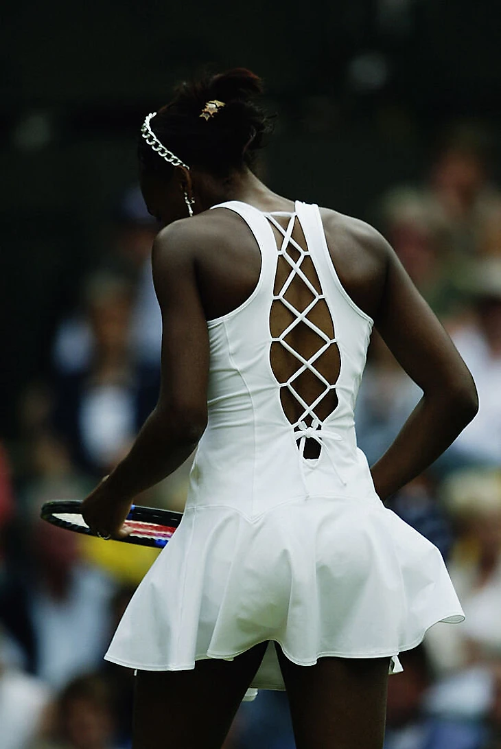 В XXI веке теннисное платье в каком-то смысле вернулось к истокам: как 150 лет назад женщина на корте должна была быть одета так же, как в жизни, так и сейчас теннисное платье, чтобы резонировать (и продаваться), стремится отсвечивать поп-культуру или моду за пределами корта. Поэтому еще в 2003-м платье Винус Уильямс на «Уимблдон» сделала дизайнер Диана фон Фюрстенберг,