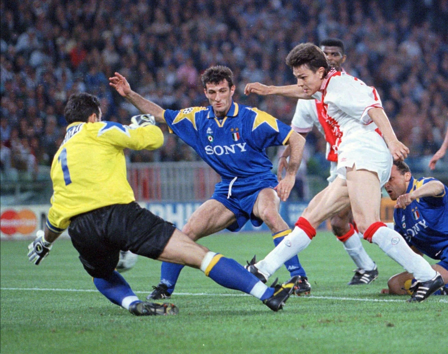Дзофф контролировал все подступы к штрафной, но это же его и сгубило — поскольку ему приходилось отходить с вратарской линии чуть ближе к центру штрафной для помощи своим защитникам, итальянец допустил роковую ошибку в момент навеса с левого фланга «Аякса»… В борьбе с защитником Джонни Реп выпрыгнул выше своего визави и ударом головы попросту перекинул мяч через пораженного Дино.