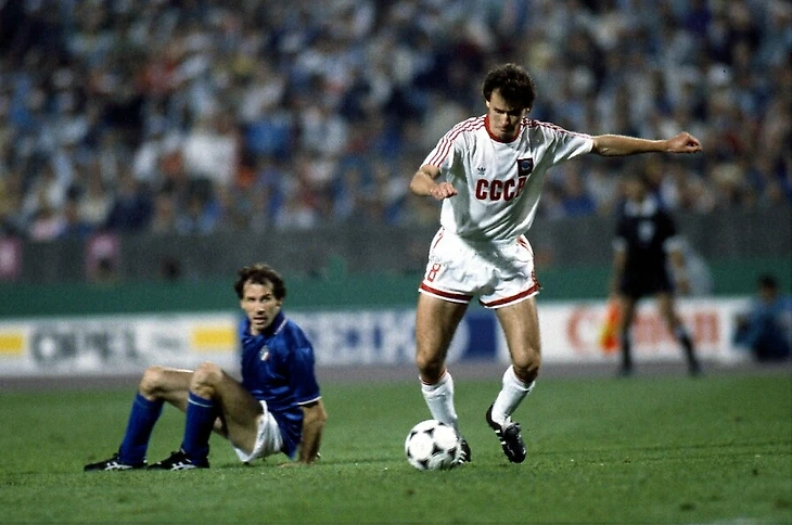Но одно дело обыгрывать какую-то там Данию и Испанию (не в обиду обеим сборным), а другое — набирающую ход от матча к матчу советскую машину. После анализа игры «скуадры адзурры» Валерий Лобановский пришел к выводу, что самый верный способ их обыграть заключается в использовании постоянного прессинга. С утра в день матча наш коач провел анкетирование среди игроков, попросив их ответить на вопрос — согласны ли они и готовы ли к прессингу? Все 20 футболистов дали положительный ответ. Итальянская сборная оказалась как птица в силках — рвется, трепыхается, а взлететь не может . Наши сразу же взяли соперников на их половине поля в такой оборот, что у тех голова кругом пошла — куда ни ткнешься, а там уже футболист сборной СССР. В этом и был смысл тактического плана нашей команды: не ждать, когда соперник ошибется, а заставить его ошибиться. До перерыва инициативой полностью владела сборная СССР («Это был какой-то суператакующий футбол»,— заметил тренер бременского «Вердера» Реххагель).
