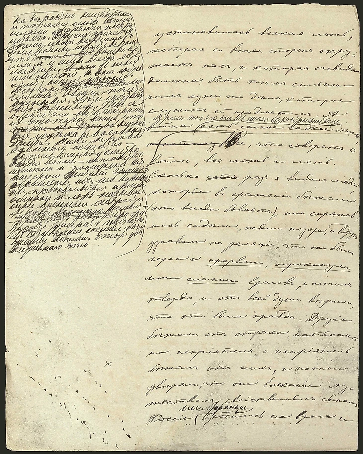 Очень ярко состояние Толстого проявляется в письме Фету в январе 1871-го: «Писать дребедени многословной вроде Войн[ы] я больше никогда не стану. И виноват и ей-богу никогда не буду».