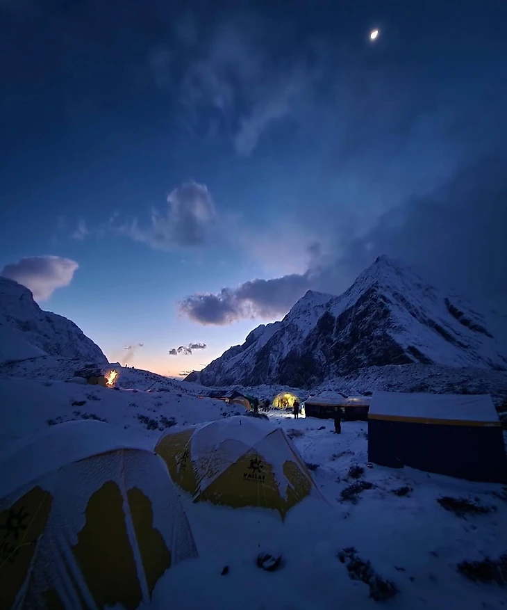 Манаслу считается относительно простой вершиной. 8163 м, но при этом там никаких проблем с логистикой. Пожалуй, самая переполненная гора после Эвереста. В базовом лагере есть кофейня и пекарня. Реально – мини-город. Рядышком деревня, можно спускаться и ночевать там.
