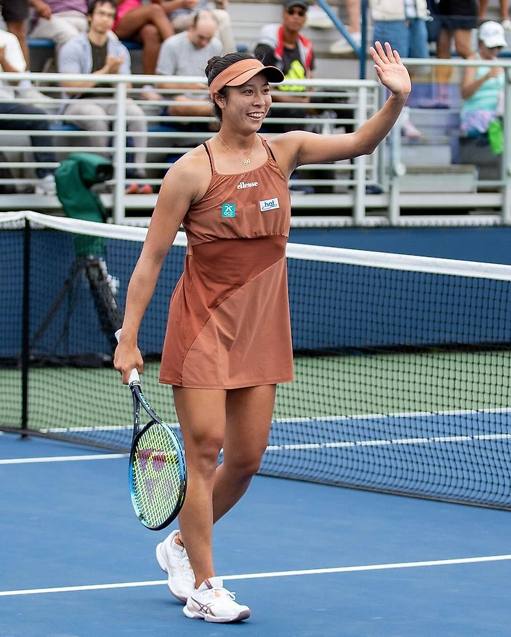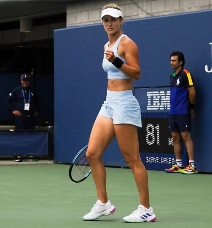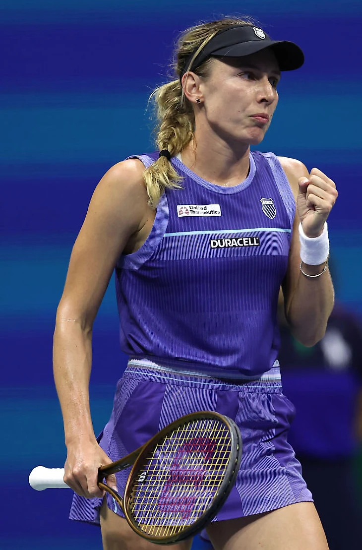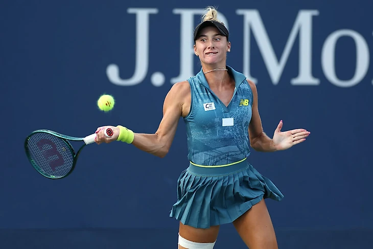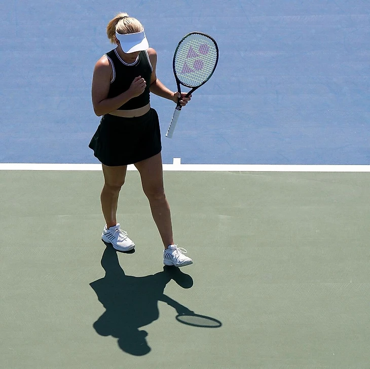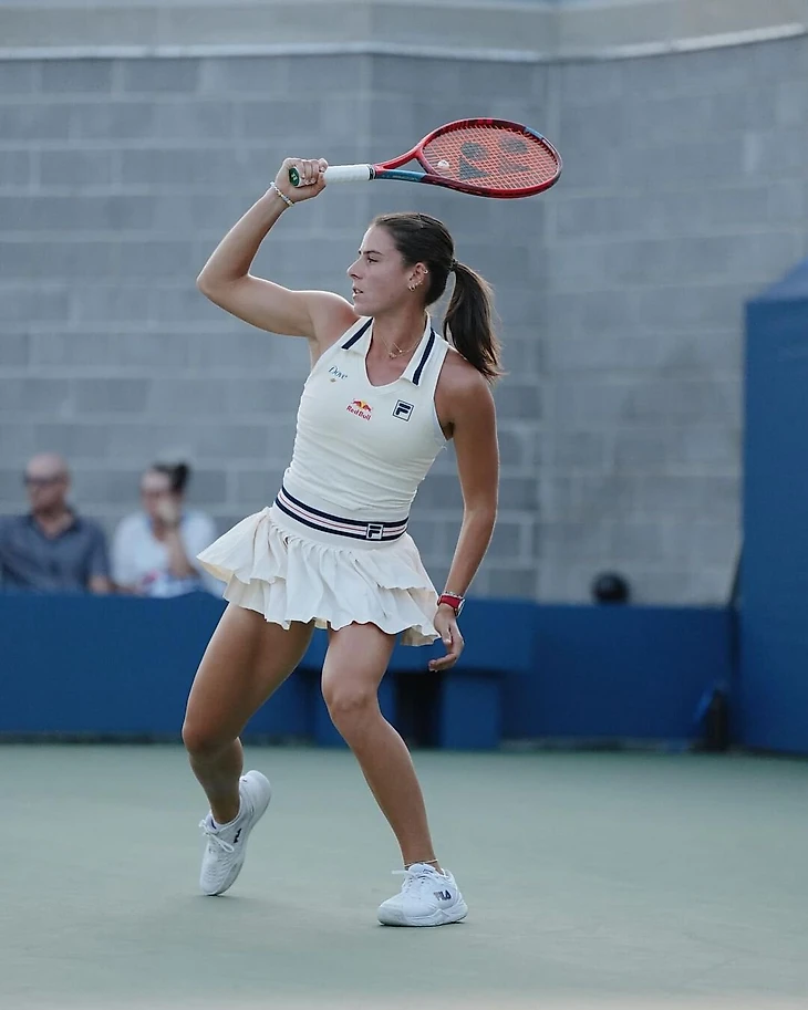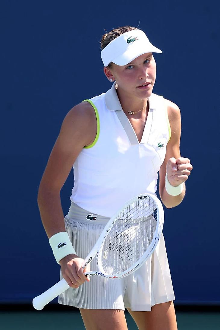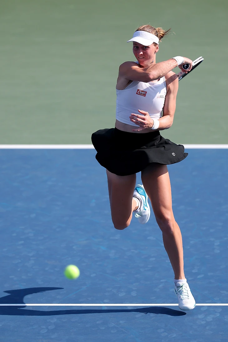 Эрика Андреева сменила великолепные уимблдонские шорты на светло-серую юбку,