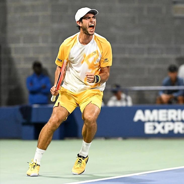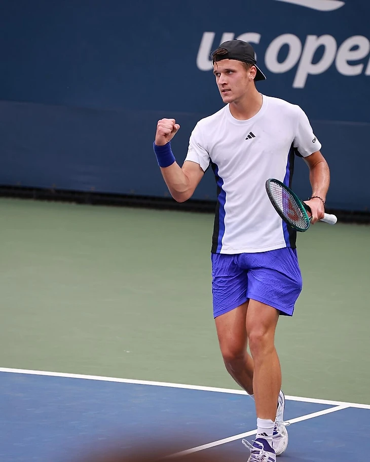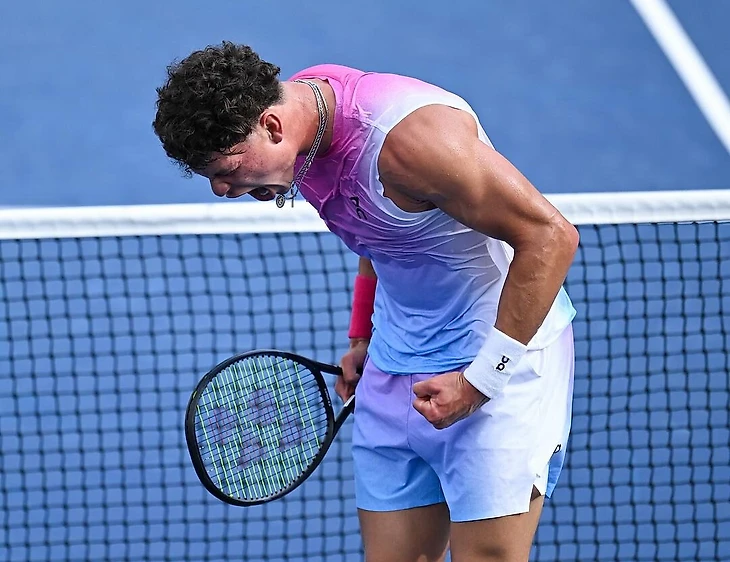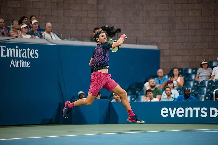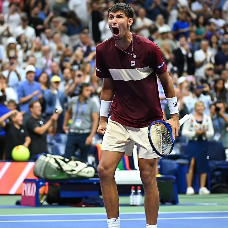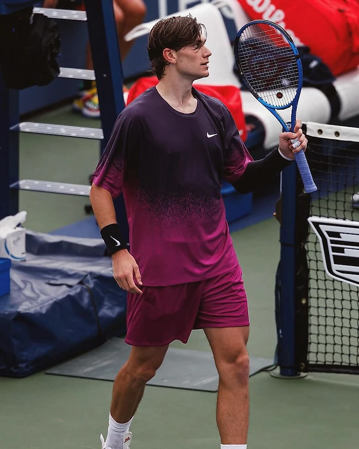 Алексей Попырин в футболке модного бордового цвета обыграл Новака Джоковича и впервые вышел во вторую неделю «Шлема».