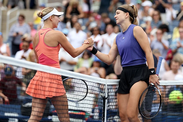 К ней присоединяется Пейтон Стернс в красивой полупрозрачной юбке, второй раз в сезоне обыгравшая на «Шлеме» Дарью Касаткину.
