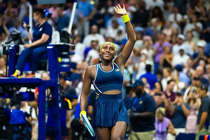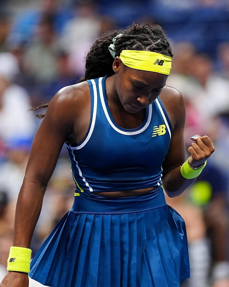 Коко Гауфф защищала титул в традиционно прелестном New Balance: голубом днем и темно-синем вечером.