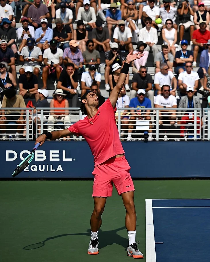 Фрэнсис Тиафу в третий подряд четвертьфинал US Open вышел в пастельной сиреневой майке,