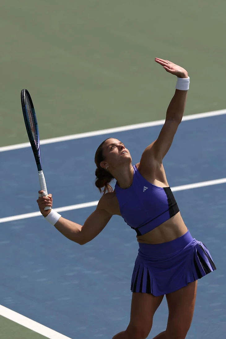 Юбку со складками и укороченный топ-борцовку классно показала Мария Саккари (правда, ее турнир продлился всего один сет),