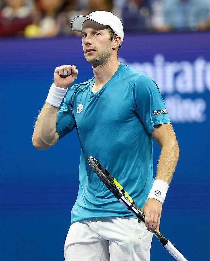 Победитель Карлоса Алькараса Ботик ван де Зандшульп тоже в голубом – от независимого бренда The Indian Maharadja, одевающего многих нидерландских игроков.