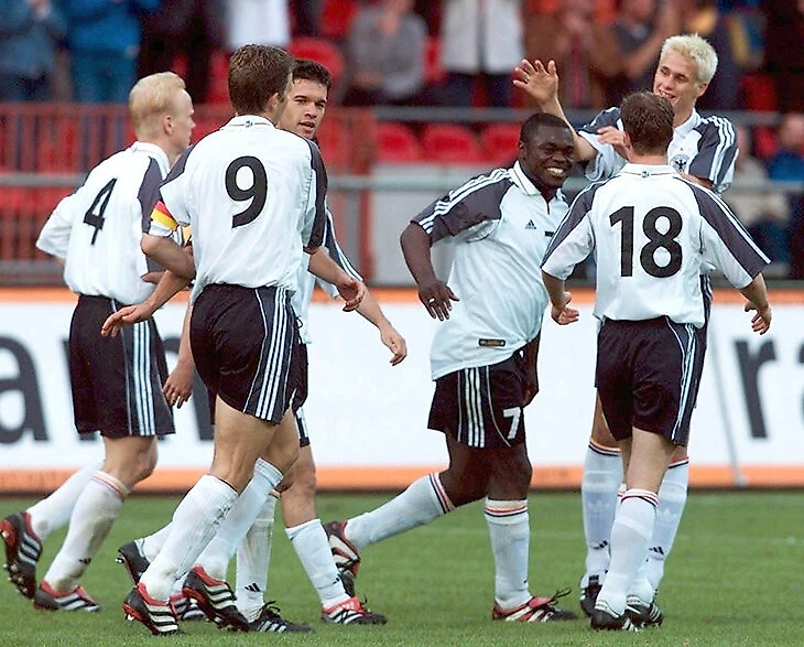 Первым темнокожим игроком в истории сборной Германии после объединения стал Джеральд Асамоа. Он родился в Гане, но в 90-х эмигрировал с родителями в Германию. Форвард мощно запустил карьеру в «Ганновере», откуда перешел в «Шальке». Из Гельзеркирхена футболист попал в сборную, где дебютировал весной 2001-го.