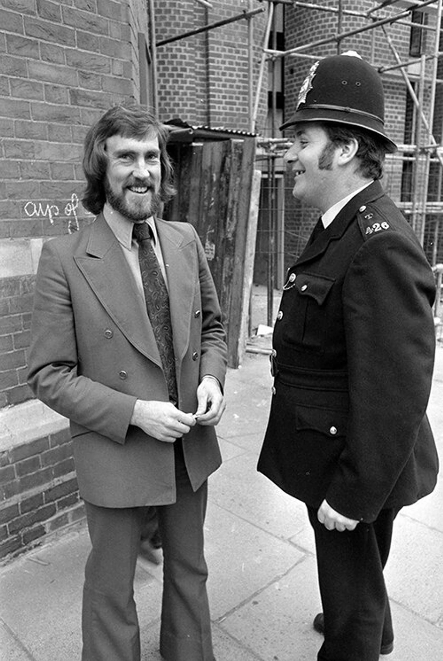 «Каждый раз, когда щелкал затвор фотокамеры, он обнажался. Я подумал, что мне необходим хотя бы один кадр, где его чертовы интимные места будут прикрыты! Вот бы полицейский держал шлем ровно», – вспоминал со смехом Брэдшоу.