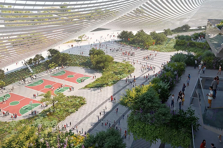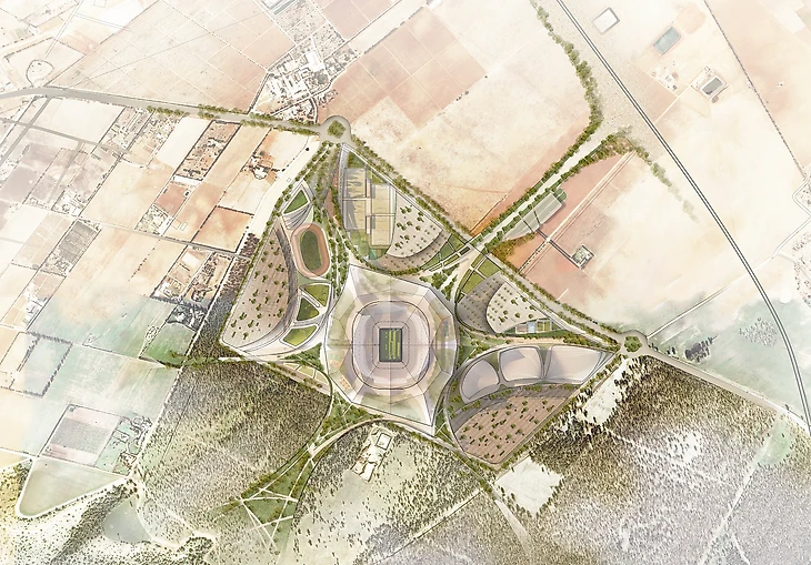 Стадион выглядит помпезным. Дизайн принадлежит компании Populous, которая также отвечает за проектирование нового стадиона «МЮ». Под проект выделяют 100 гектаров земли – большая часть уйдет под посадку садов и строительство спортивных площадок.