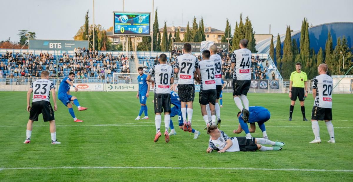 Четвертый раз в текущем сезоне «Севастополь» и «Кубань Холдинг» встретились в очном противостоянии. Предыдущие три матча завершились ничейными результатами, и все они проходили в чрезвычайно упорной борьбе. Не стал исключением и отчетный матч. Со стартовым свистком судьи гости предложили нашей команде жесткий, силовой футбол с борьбой на каждом участке поля. Севастопольцы вызов приняли и на протяжении всего первого тайма доминировали, забив два мяча. На 24-й минуте потрясающим дальним ударом счет открыл Юрий Максимов. На 44-й минуте очередным голом отметился Амет Дугу — 2:0.