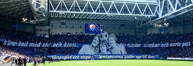 Напоследок вернёмся в Швецию, где в воскресенье состоялось столичное дерби «Юргорден»—«Хаммарбю». «Юргорден» перед этой встречей одержал 6 побед подряд и сел на хвост лидирующему «Мальмё», тогда как «Хаммарбю» выступал не так ровно, но тоже располагался вплотную к первой тройке. Примечательно, что стадион «Теле2 Арена» является домашним для обеих команд, поэтому хозяйничал «Юргорден» в этой игре лишь номинально. Но, тем не менее, предлагаю с них и начать, тем более они подготовили к этой игре крутой перфоманс «Мы играем с мячом стильно и классно – играем в стенку, пятками и короткими передачами. Боевой дух и элегантность – «железные печи» приглашают вас на танец!». Эти слова встречаются в фанатской песне «Мы – крутые!», а «Железные печи» — это прозвище клуба «Юргорден», а также название его крупнейшего официального фан-клуба болельщиков.