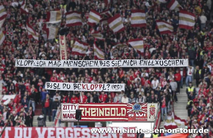 На втором баннере ультрас «Майнца» прямо указали авторство цитаты самого Клоппа: «Мне нравятся люди до тех пор, пока они меня не разочаруют», а в третьем красиво обыграли фамилию тренера во фразе «Ты с ума сошел?».