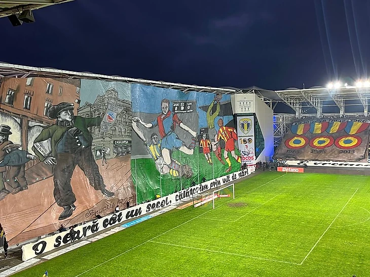 Но вернемся в Румынию. Так как матч начинался в 19:00 по местному времени, то на 24-й минуте встречи, то есть в 19:24 (в честь года основания клуба), над стадионом началось 10-минутное световое шоу, во время которого матч остановили, а освещение на арене специально выключили.