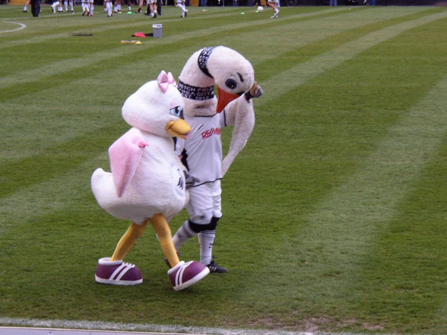 К слову о красных карточках. Первым маскотом, словившем удаление, стала Утка Дипдэйл из «Престона». В 1997-м назойливая птица наклонялась над воротами «Блэкберна», отвлекая вратаря Тима Флауэрса, и судье пришлось доставать красную. А в 2011 году того же Дипдэйла оттаскивали с бровки поля, чтобы он не отвлекал голкипера« Дерби Каунти».