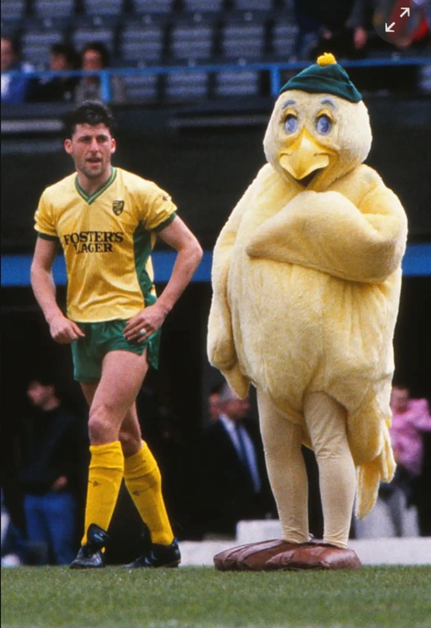 Энди Таунсенд из «Норвича» с опаской смотрит на огромную канарейку. Я бы тоже держался от нее подальше.
