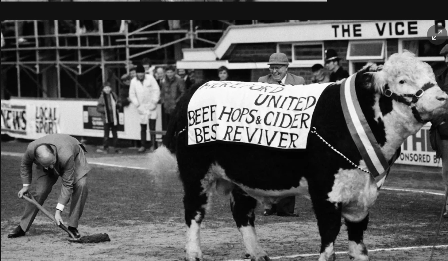 Руководитель «Херефорд Юнайтед» убирает за маскотом своего клуба перед кубковой встречей с «Арсеналом» (1985 г.)