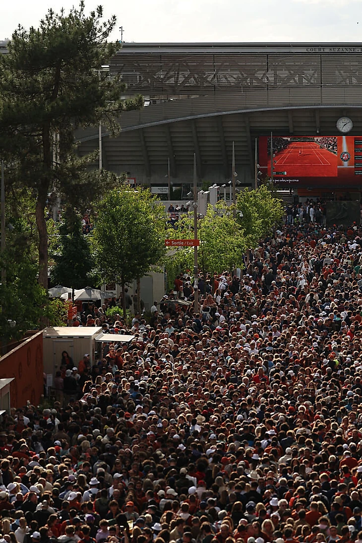 Надаль в черном костюме и черной рубашке вышел на грунт, каждую молекулу которого знает как родную. Традиция, которая моментально включает всю арену: когда ведущий перечисляет все года, в которые Надаль выигрывал «Ролан Гаррос». От 2005-го до 2022-го – 14 шагов, каждый на полтона выше. К концу трибуны уже невозможно перекричать.