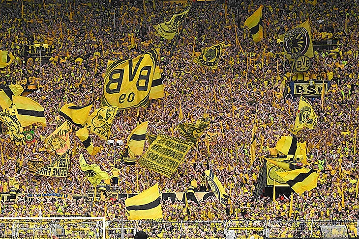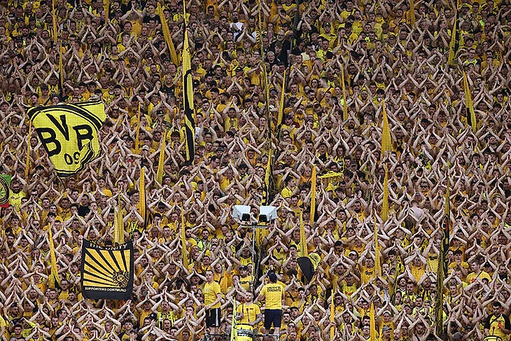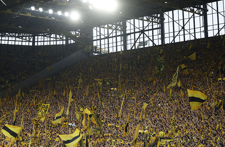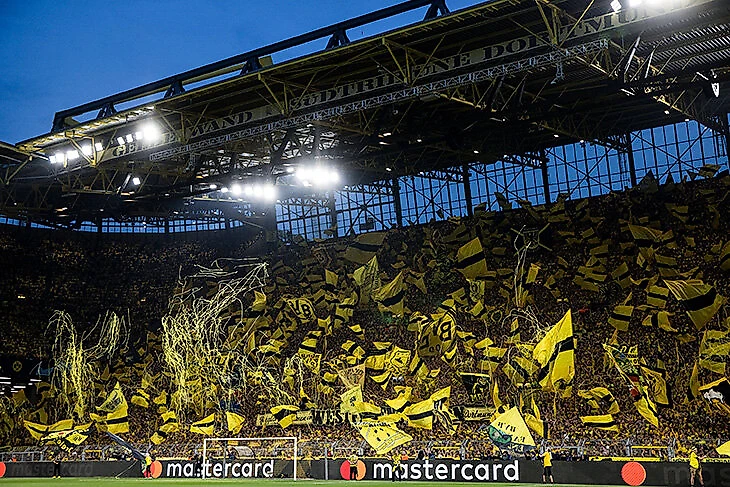 Как же они болеют на «Вестфаленштадионе» – масштабных баннеров на этот раз не заготовили, но фанаты на знаменитой «Желтой стене» запаслись флагами.